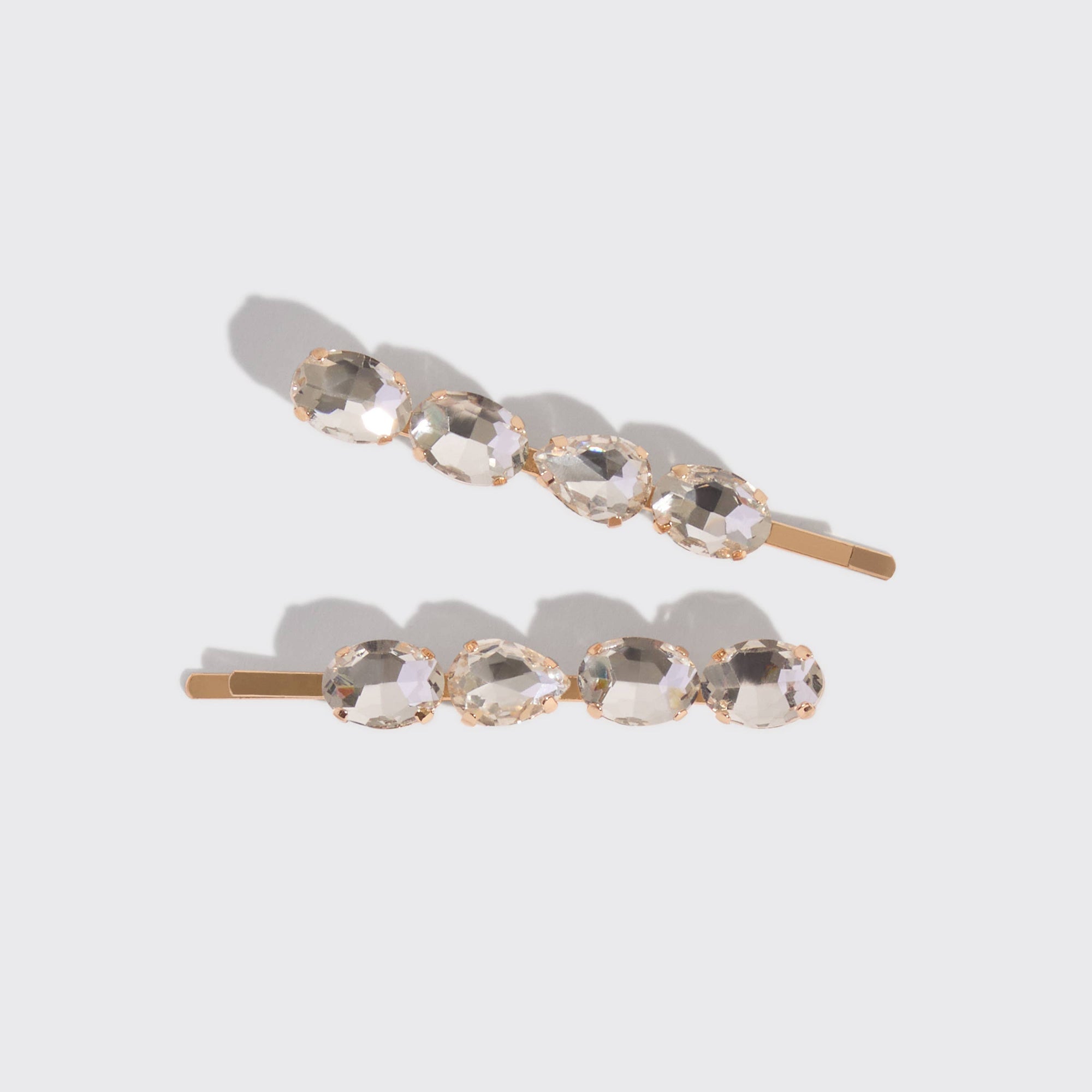 Metal Rhinestone Assorted Bobby Pins 4pc Set - Gold